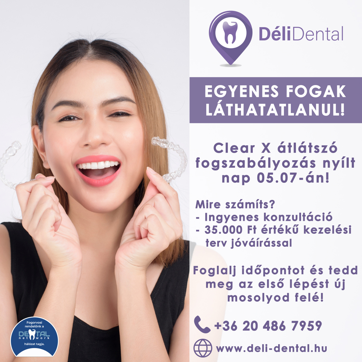Szeretnél szebb, rendezettebb mosolyt úgy, hogy közben a fogszabályozás szinte észrevehetetlen maradjon? Akkor várunk szeretettel a ClearX nyílt napon a Déli Dental rendelőben!